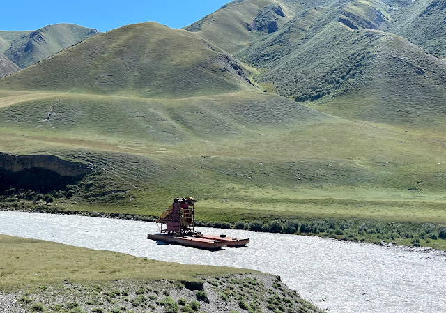 It was a bright crisp morning, as I continued down crumbly asphalt A-364. The road paralleled the Saryjaz River, and snow-capped peaks towered ahead in the distance. As I was riding down the hill a cyclist going in the other direction shouted out, "Hey Rob!". It was Sarah and Dylan who were pedaling up the hill. Sarah then yelled, "Go, go, go, go, go, go, go!", which really lifted my spirits. Then Allan passed me on his cargo bike. I remembered when he had ridden by me last night and it was hard not to feel discouraged. I kept telling myself that I was riding my own race and that I was ahead of my schedule.